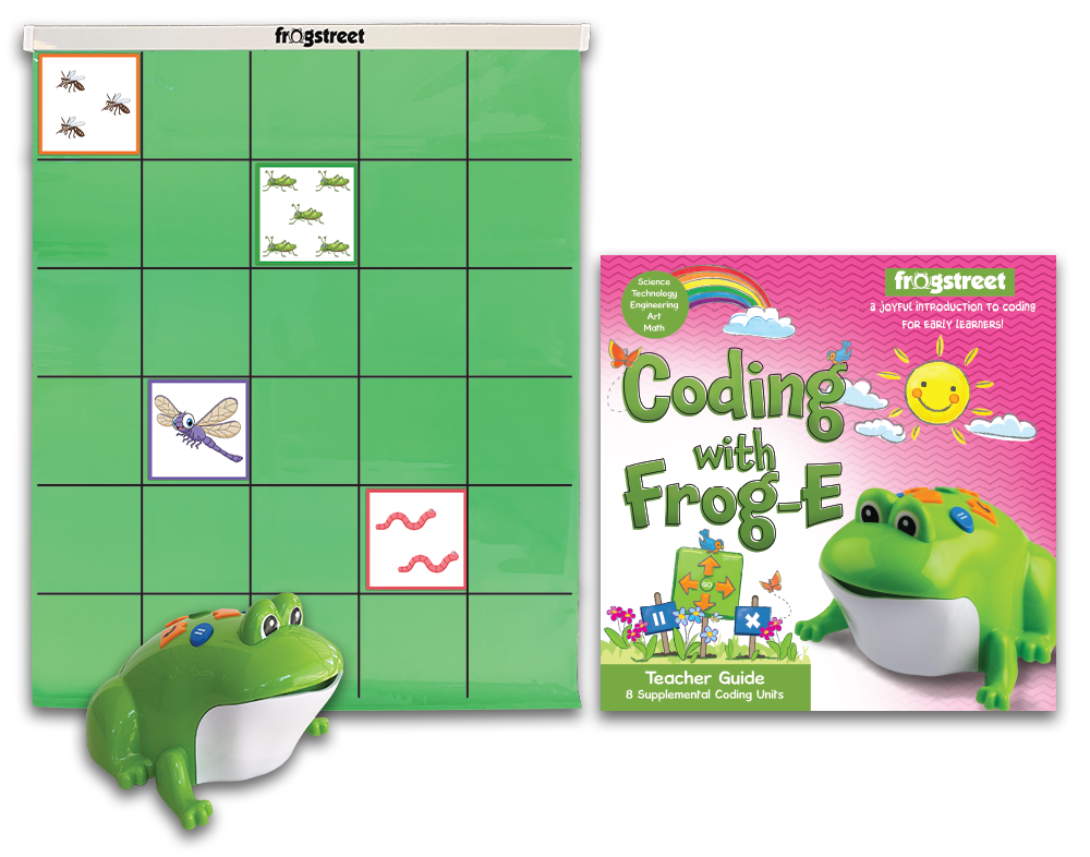 Coding with Frog-E includes several units of researched-backed, joyful STEAM learning activities designed for early learners by the Early Childhood Education experts at Frog Street. Lessons in Coding with Frog-E are connected to familiar experiences in a young child’s world and reinforce all STEAM concepts, including: