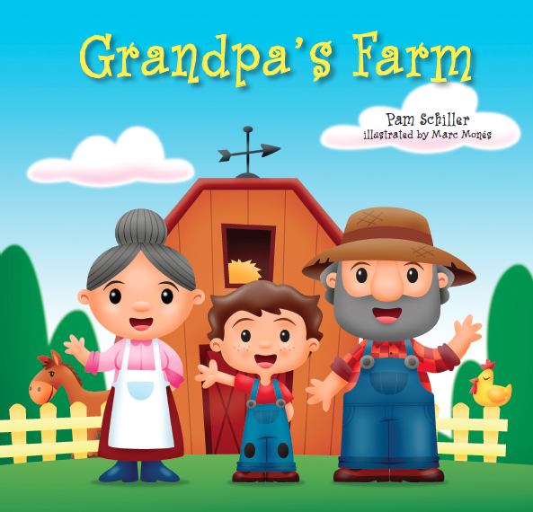 In this illustrated board book, a little boy is the best helper on Grandpa’s farm. He feeds all the farm animals (cows, pigs, chickens, ducks) and helps plow the earth. At the end of a long work day, the little boy along with Grandma and Grandpa fall asleep to the “baaing” of the sheep. (16 pages)